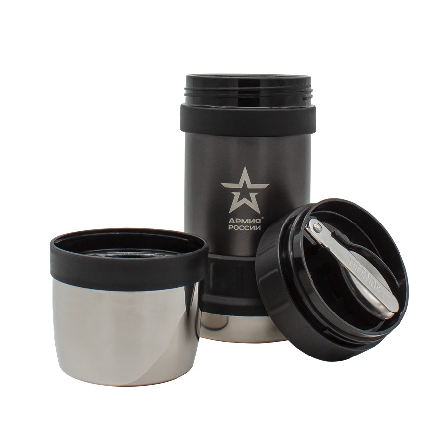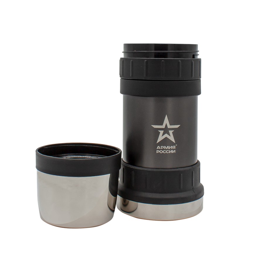 Суперпрочный термос для еды ШТУРМ выдержит любые экстремальные ситуации. С его помощью «обед по расписанию» состоится в любых условиях – термос оснащен складной ложкой из нержавеющей стали, которая хранится в специальном отделении винтовой пробки. Одно из главных достоинств модели – длительное сохранение блюд горячими и ароматными (не менее 7 часов) или холодными и свежими (не менее 12 часов). Высокие температурные характеристики и многолетний срок службы обеспечиваются за счет высококачественных материалов и современных технологий, применяемых в процессе его производства. Термос ШТУРМ лимитированной серии АРМИЯ РОССИИ изготовлен с соблюдением международных стандартов качества.