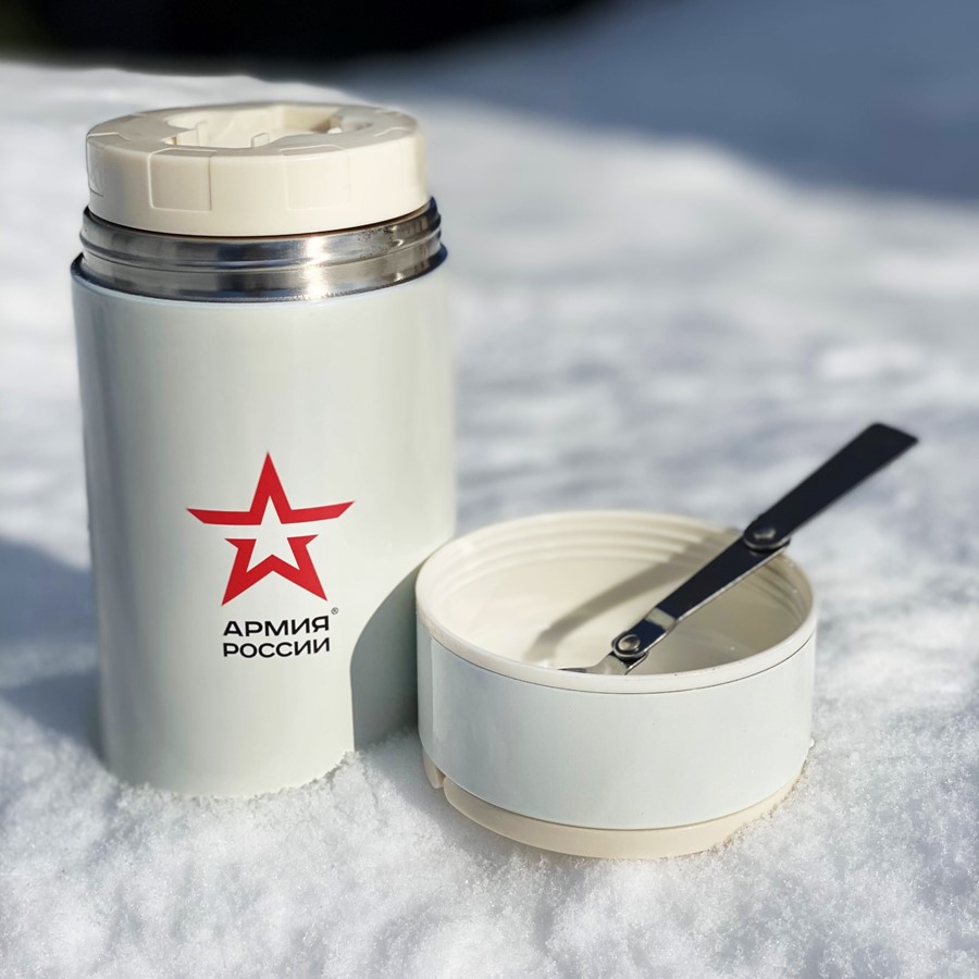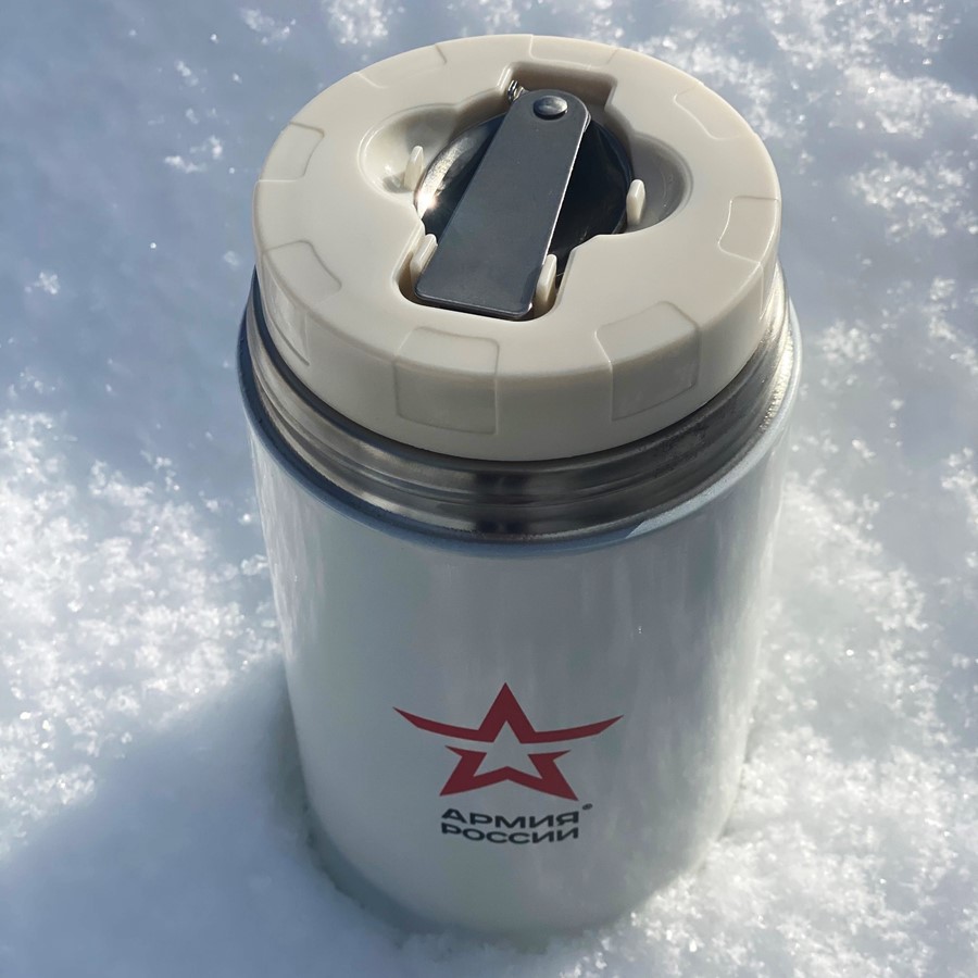 Вашему аппетитному обеду не страшны ни арктический холод, ни южный зной, если он хранится в термосе «Арктический» известного бренда АРМИЯ РОССИИ. Готовые блюда останутся в термосе горячими или холодными на протяжении всего активного дня благодаря вакуумной изоляции и герметичности конструкции. Объём термоса рассчитан на 4 порции. Для удобства приёма пищи в нужное время и в любом месте в комплекте предусмотрена складная ложечка из нержавеющей стали, которая хранится в специальном отделении пробки. Крышку термоса можно использовать как мисочку. На крышке расположены две складные ручки, позволяющие комфортно носить термос в руках или убирать их в случае хранения в рюкзаке или сумке. Термос прост в эксплуатации и уходе благодаря широкому горлышку.