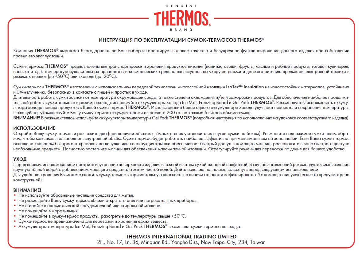 Инструкция по эксплуатации: термосумка thermos e5 - 12 can cooler ldpe