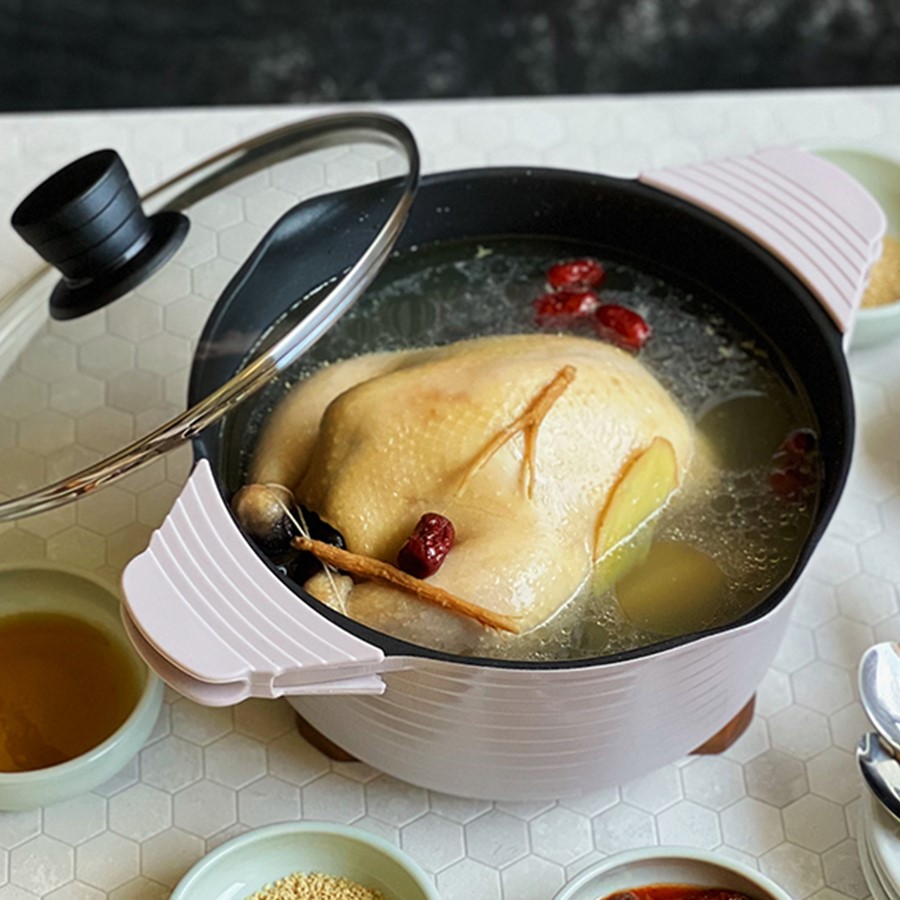 Для удобства перемещения кастрюли предусмотрены прочные литые ручки, а чтобы не обжечься в комплектацию входят силиконовые прихватки со специальным рельефом, обеспечивающим комфорт при удержании кастрюли в руках.